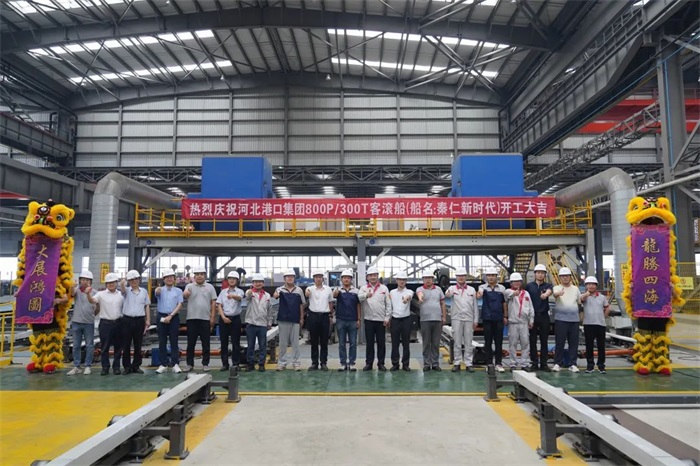 8 月 15 日,蕪湖造船廠為秦皇島合創(chuàng)船務(wù)有限公司建造的800客位新型客滾船舉行開工儀式。河北港口集團(tuán)、秦皇島合創(chuàng)船...